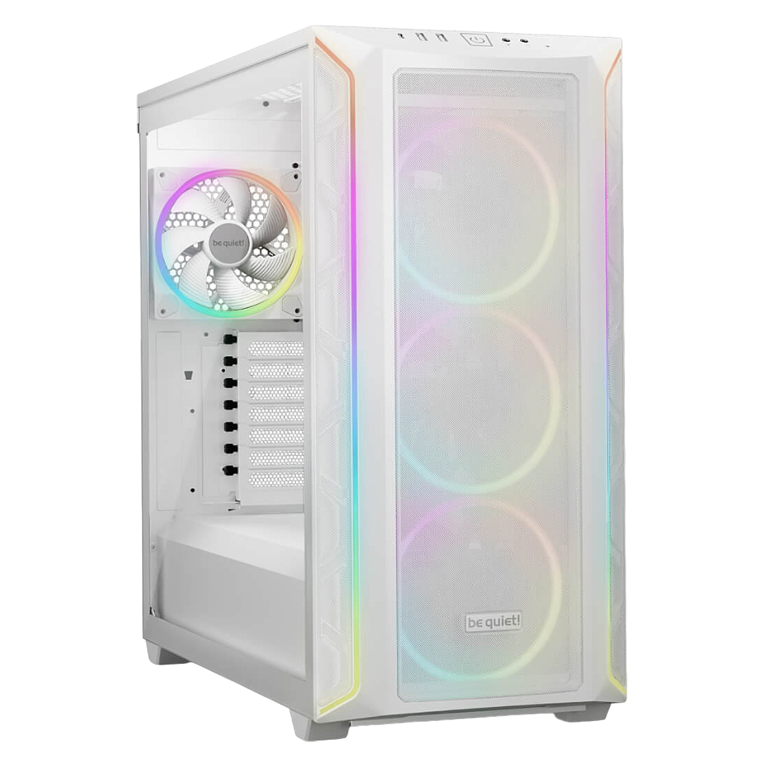 Light Wings PWM fans offer ARGB lighting at the front and rear. The subtly lit ring at the back combined with the bright one at the front make for a magnificent appearance from every angle. Additional ARGB LEDs at the front of the case offer multiple colors and modes to individualize the look. You can optionally synchronize lighting with your motherboard or an ARGB controller.