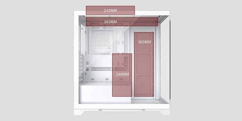 החלק העליון והקדמי יכולים להכיל רדיאטור קירור 360 מ״מ ליצירת מערכת קירור חזקה.