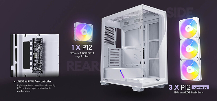 Included ARGB Fans: Reverse On Right Side 3x120mm & Rear 1x120mm
