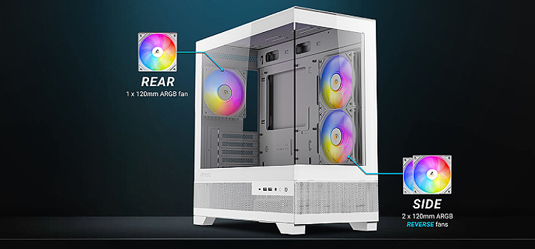 מארז מחשב CX500M ARGB מבית Antec עם 3 מאווררי ARGB מותקנים מראש. CX500MARGB