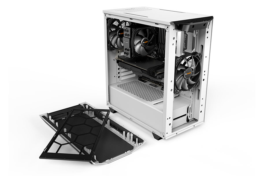 The front, sides and regular top cover are equipped with insulation mats that result in great stability and improved noise dampening capabilities. The dust filters on the front and bottom are easy to remove for cleaning