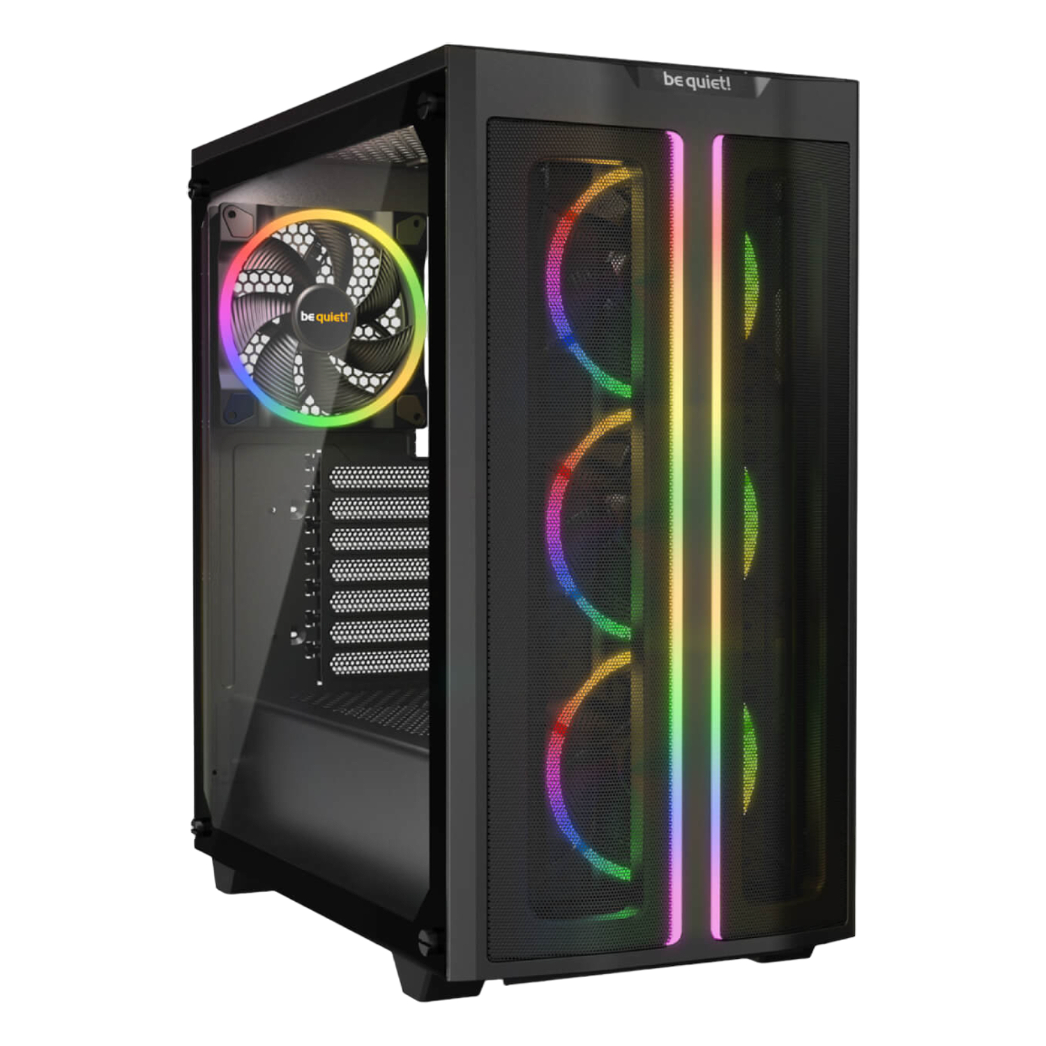 Light Wings PWM fans offer ARGB lighting at the front and rear. The subtly lit ring at the back combined with the bright one at the front make for a magnificent appearance from every angle. Additional ARGB LEDs at the front and inside the case offer multiple colors and modes to individualize the look from the inside as well as from the outside. You can optionally synchronize lighting with your motherboard or ARGB controller.