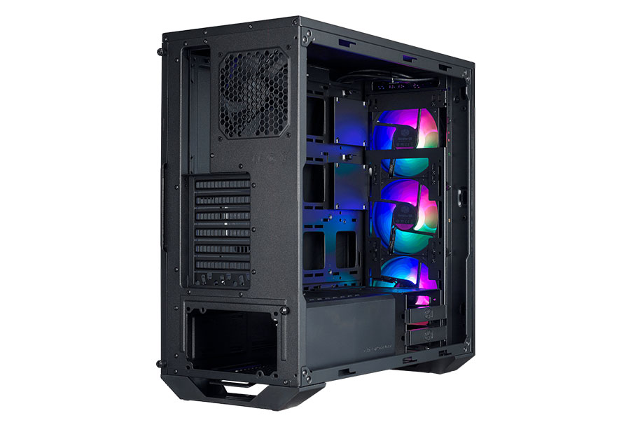 The MasterBox Pro 5 ARGB is an E-ATX case that specializes in build adaptability and aesthetic customization. The internal layout adapts to the motherboard size, ensuring that cable management remains efficient for each configuration. Paired with a tempered glass side panel, out-of-the-box lighting, and a DarkMirror front panel, build with confidence and imagination within the MasterBox Pro 5 ARGB.