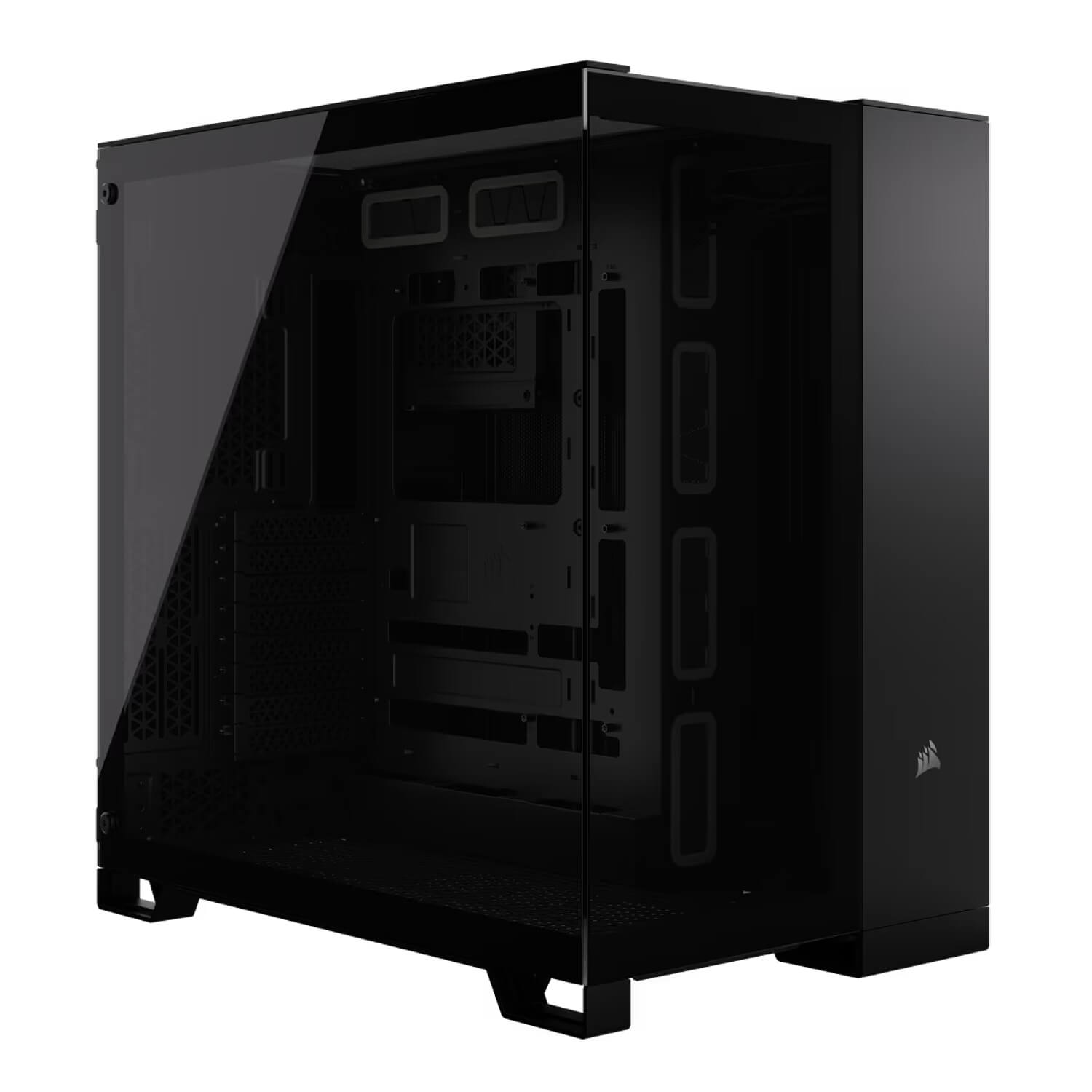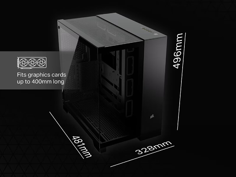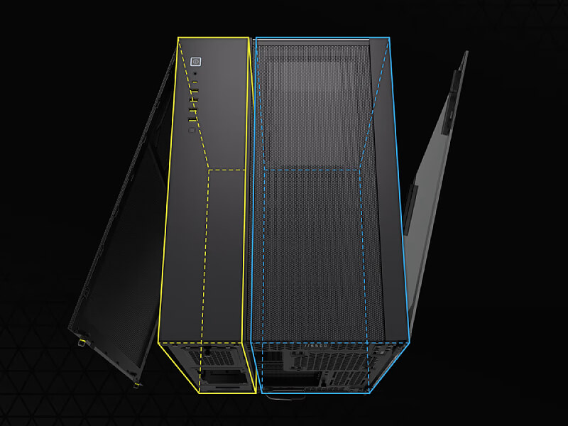 מארז ה-CORSAIR 6500X Mid-Tower Dual Chamber מספק זרימת אוויר וקירור יוצאי דופן עם פאנל רשת מלא ועיצוב תא כפול לבנייה מאורגנת ונקיה.