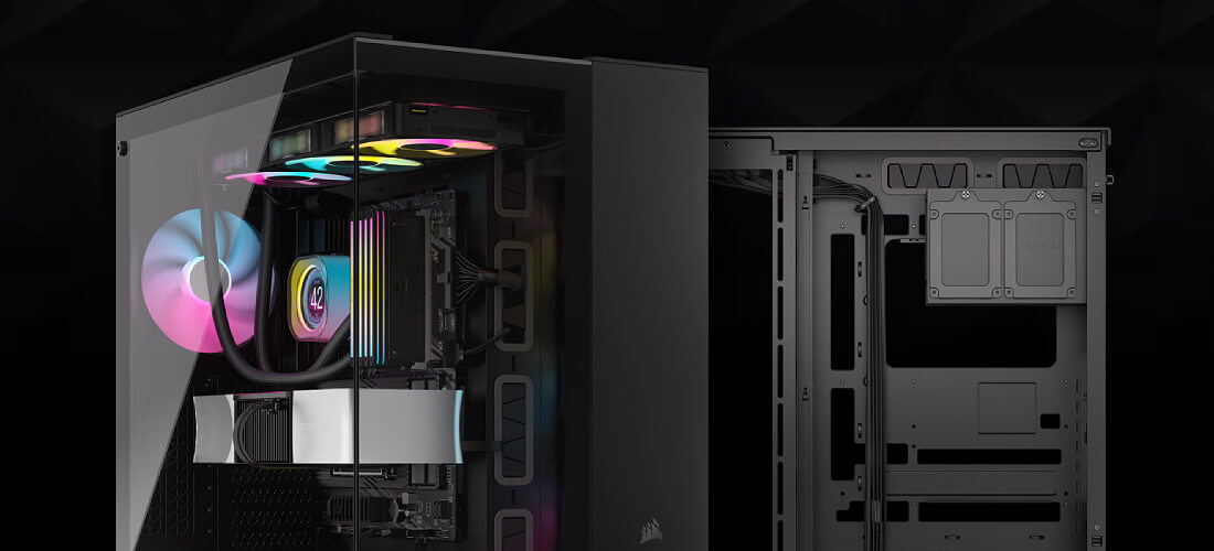 הצג את הבנייה הנקיה והמאורגנת שלך בתא אחד המצויד במגוון תושבות מאווררים ורדיאטורים, תוך הסתרת הכבלים, כונני האחסון וספק הכוח בתא השני.