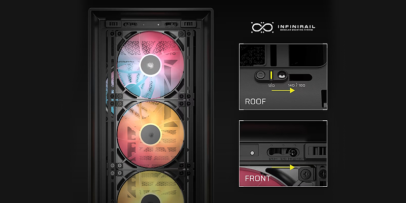 המגיע עם מערכת התקנת מאווררים InfiniRail, מערכת ניהול כבלים RapidRoute 2.0 ותמיכה בלוחות אם עם חיבורים הפוכים (Reverse).