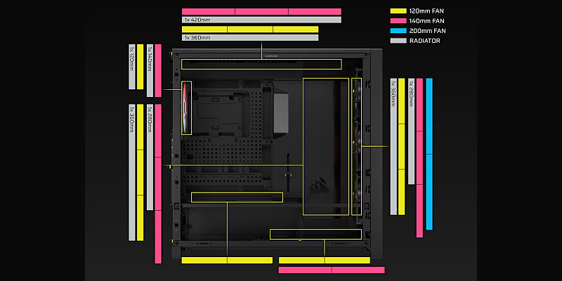שפרו את הקירור עם שלוש עמדות להתקנת רדיאטורים – עד 420 מ"מ בגג, ו־360 מ"מ בקדמת ובצד המארז.