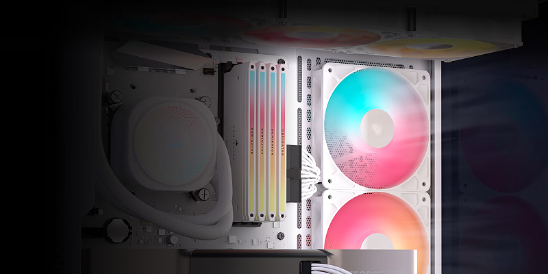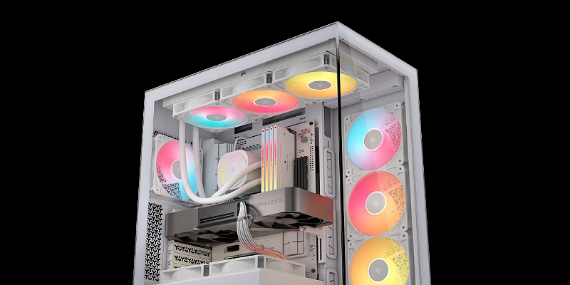 מארז מחשב 3500X RS-R ARGB White מבית Corsair, בצבע לבן, מתאים לרוב כרטיסי המסך והקירורים הגדולים למעבד, רדיאטורים בגודל 360 מ״מ ואפילו לוחות אם מסוג E-ATX, מגיע עם 3 מאווררי RS120-R ARGB בגודל 120 מ"מ מותקנים מראש. CC-9011323-WW