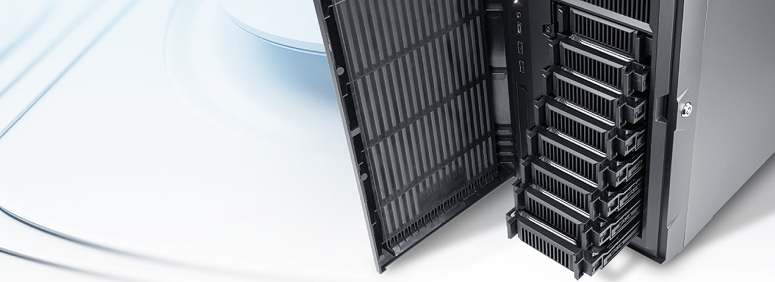 8 hot-swappable drive trays to accommodate up to 2.5" or 3.5" SAS-12G / SATA-6G drives with two LED indicators for displaying drive operation status.
