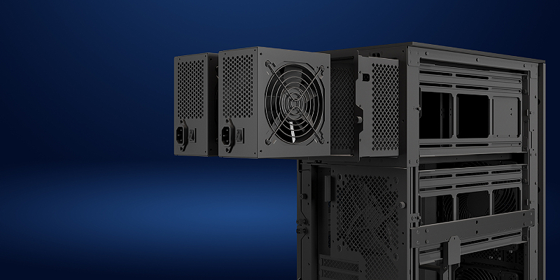 המארז תומך בשתי ספקי כוח ומאפשר התקנה של עד שלושה רדיאטורים בגודל 360 מ"מ לקירור מתקדם.