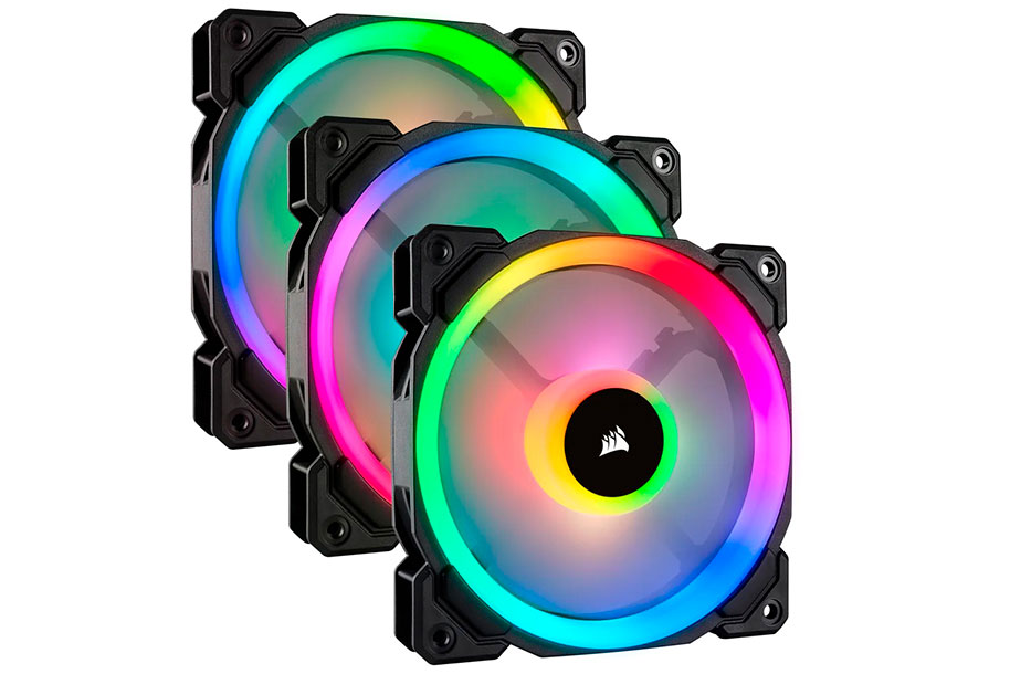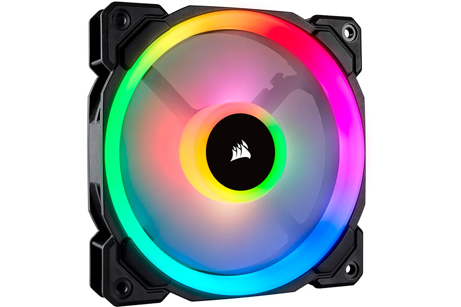 The CORSAIR LL120 RGB LED PWM fan boasts 16 independent RGB LEDs