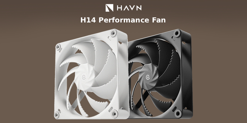 3 מאווררי H14 מבית HAVN, בצבע לבן, בגודל 140 מ"מ, עם עיצוב אווירודינמי ייחודי המגביר את זרימת האוויר, לחץ האוויר הסטטי ומשפר את יעילות הקירור. PGW-AC-HVN-024