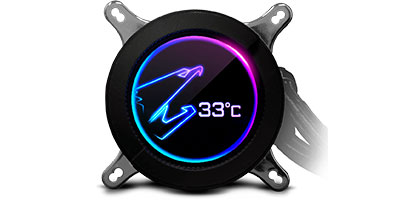 | New high performance pump efficiently dissipates heat from high end CPUs. Unique 60*60mm circular full color LCD with dynamic AORUS logo display designs and custom a picture and text available. High performance, low-noise level, dual ball bearing ARGB fans. Supports RGB FUSION 2.0 synchronization with other AORUS devices. Universal design for fan & pump RPM control, supports all MB brands. |