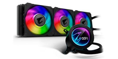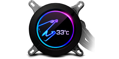 | New high performance pump efficiently dissipates heat from high end CPUs. Unique 60*60mm circular full color LCD with dynamic AORUS logo display designs and custom a picture and text available. High performance, low-noise level, dual ball bearing ARGB fans. Supports RGB FUSION 2.0 synchronization with other AORUS devices. Universal design for fan & pump RPM control, supports all MB brands. |