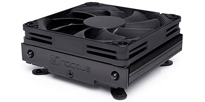 | The NH-L9i chromax.black is an all-black version of Noctua’s award-winning NH-L9i low-profile quiet CPU cooler for HTPCs and Small Form Factor (SFF) builds. Thanks to the same proven heatsink design and NF-A9x14 PWM fan, it stays true to the NH-L9i’s successful formula of fusing a height of only 37mm with strong performance and excellent quietness of operation, as well as 100% RAM and PCIe compatibility. | ![]() |