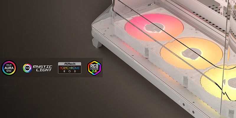 3 מאווררי ARGB בגודל 120 מ״מ עם רוטור הפוך (Reverse) מותקנים מראש בתחתית המארז, מספקים קירור עוצמתי ושקט עם תאורת RGB מרהיבה.