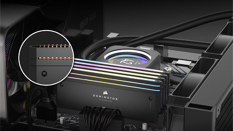 זיכרון CORSAIR DOMINATOR TITANIUM RGB DDR5 המשלב עיצוב נקי ומעודן