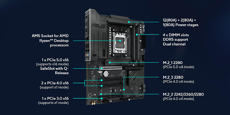 לוחות האם מסדרת X870 של ASUS מתוכננים בקפידה כדי למצות את מלוא הפוטנציאל של מעבדי AMD Ryzen™ מסדרת 9000.