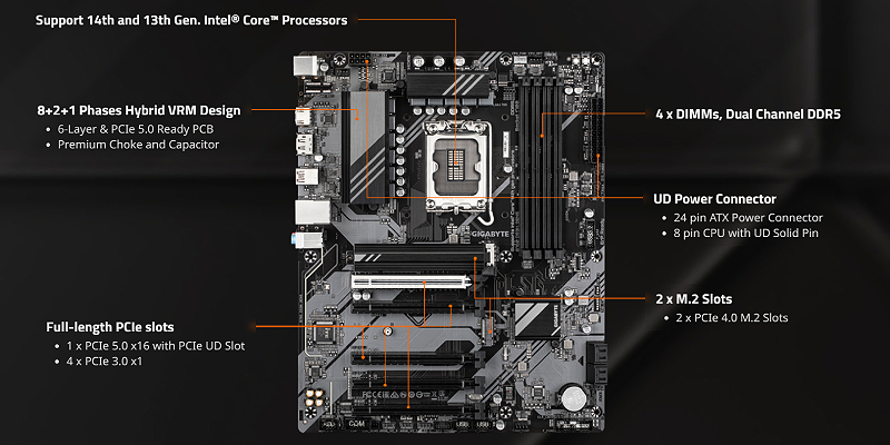 PCIe UD Slot : SMD PCIe 5.0 Armor for enhanced graphics card support