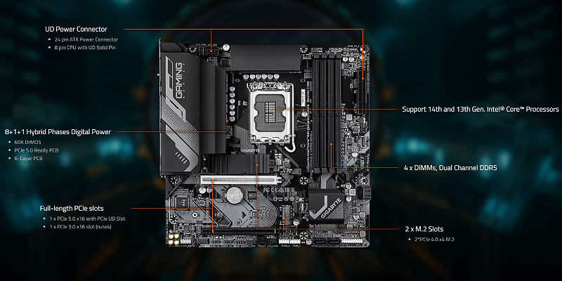 Supports Intel Core 14th / 13th /12 processors