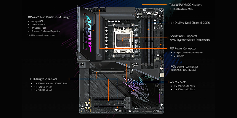 PCIe UD Slot X : PCIe 5.0 x16 slot with 10X strength for graphics card