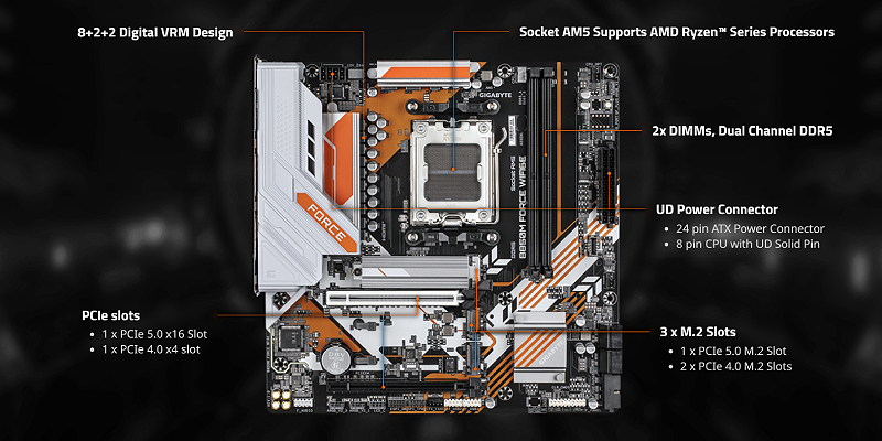 Gigabyte B850M FORCE, Supports AMD Ryzen 9000/8000/ 7000 Series Processors. GB850MFORCE
