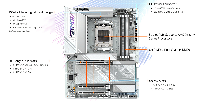 PCIe UD Slot X: PCIe 5.0 x16 slot with 10X strength for graphics card