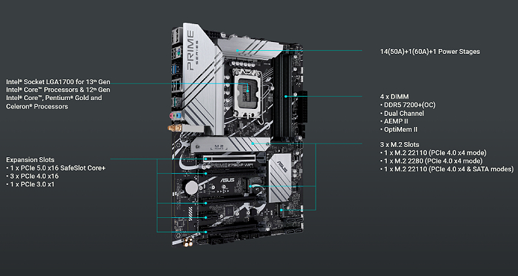 ASUS Prime series motherboards are expertly engineered to unleash the full potential of 13th Gen Intel® Core™ Processors.