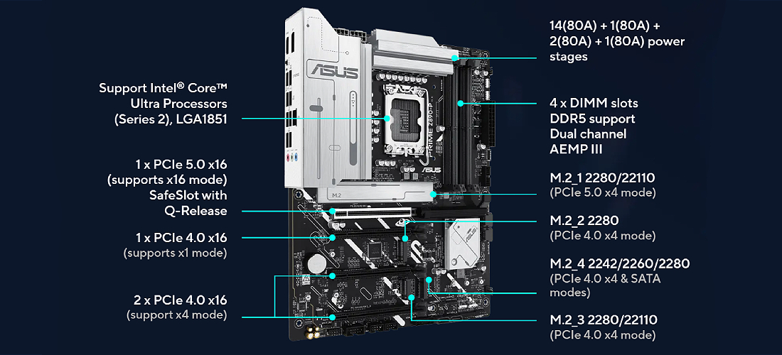 לוחות האם מסדרת ASUS PRIME מתוכננים במומחיות כדי לממש את מלוא הפוטנציאל של מעבדי Intel® Core™ Ultra העדכניים ביותר (סדרה 2).