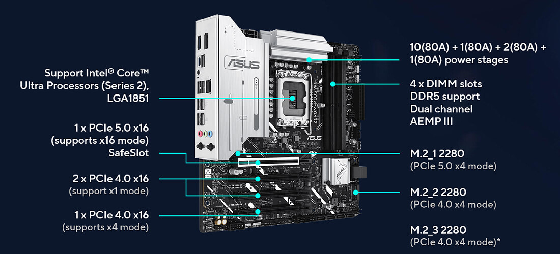 לוח האם PRIME Z890M-PLUS WIFI מספק למשתמשים ולבוני המחשבים מגוון אופטימיזציות של ביצועים באמצעות תכונות תוכנה וקושחה אינטואיטיביות.