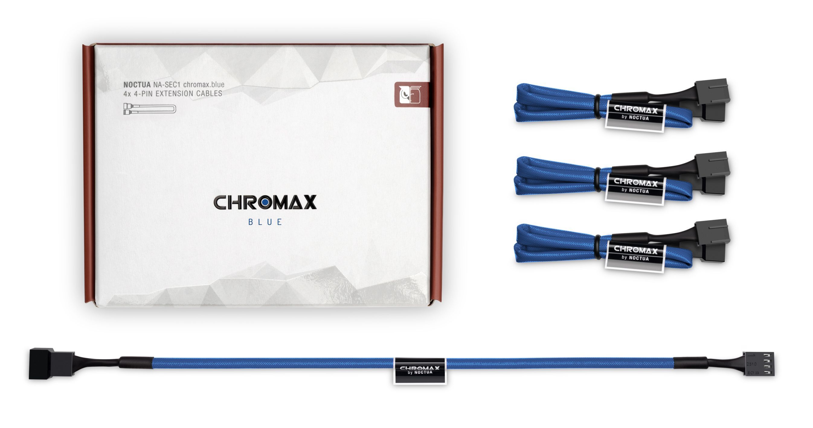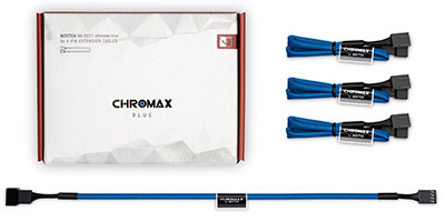 | The NA-SEC1 chromax.blue is a fan accessory set consisting of four NA-EC1 30cm extension cables. The NA-EC1’s 4-pin connectors are compatible with both 3-pin and 4-pin PWM fans and the cables can be daisy-chained in case more than a 30cm reach is required when installing fans in larger enclosures. | ![]() |