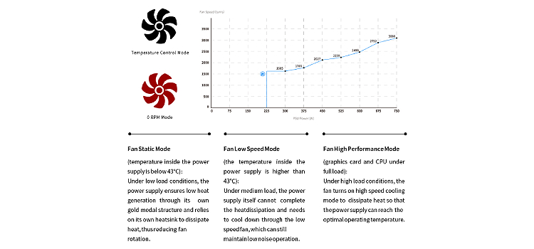 למאוורר שלושה מצבי קירור כדי להשיג את האיזון האידיאלי של ביצועים, שקט וקירור של ספק הכוח.