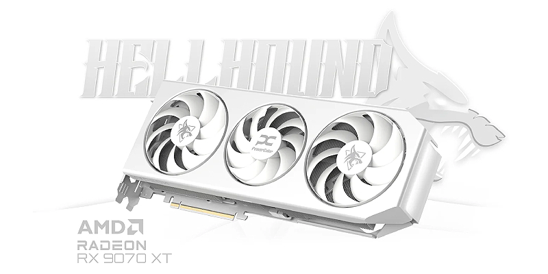 כרטיס מסך Hellhound Spectral White RX 9070 XT 16GB GDDR6 מבית PowerColor, בצבע לבן. RX9070XT16G-LOCWHITE