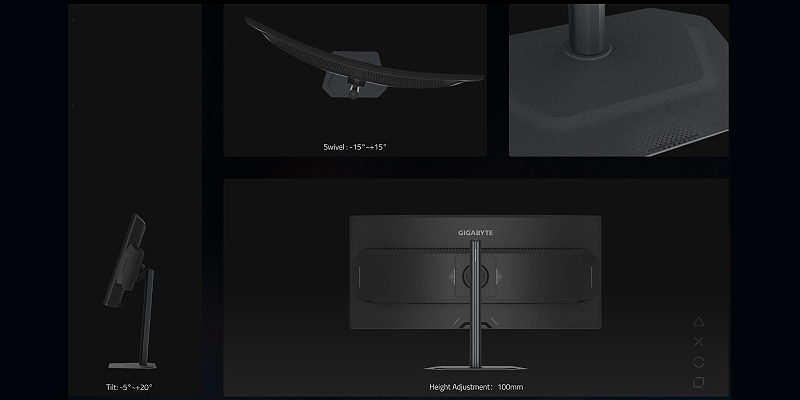 מסך הגיימינג של GIGABYTE כולל מעמד ארגונומי, המאפשר טווח גדול של כוונון גובה והטייה לנוחות מרבית.