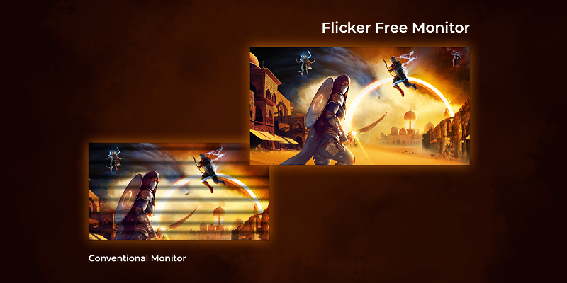 טכנולוגיית Flicker-Free של AOC עושה שימוש בתאורת DC (זרם ישר) להפחתת ריצוד האור על המסך.