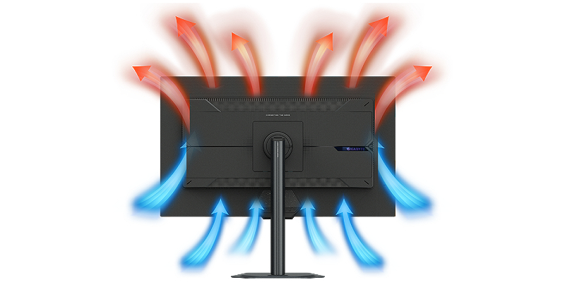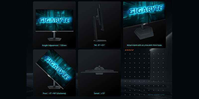 למסך הגיימינג של GIGABYTE יש בסיס ייחודי המאפשר התאמות גובה והטיה נרחבות – לעמידה מושלמת ונוחה מול המסך.