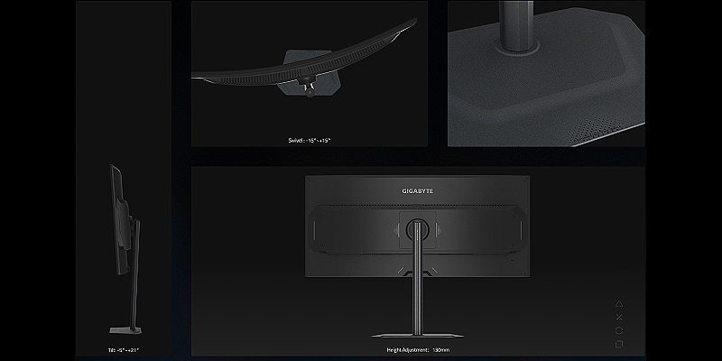 מסך הגיימינג של GIGABYTE כולל מעמד ייחודי המעוצב ארגונומית ומאפשר טווח רחב של התאמות גובה והטיה לנוחות מושלמת.