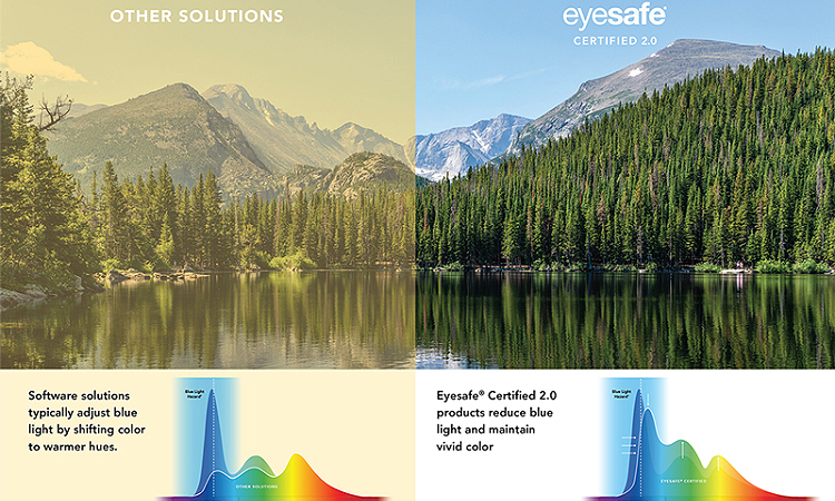 Eyesafe® 2.0 מפחית אור כחול בעל אנרגיה גבוהה תוך שמירה על ביצועי הצבע.