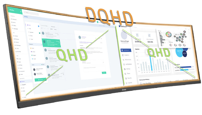 צג 32:9 רחב במיוחד עם רזולוציית DQHD 5120x1440, הנקרא גם QHD כפול (dual QHD), מספק תמונות חדות כתער.