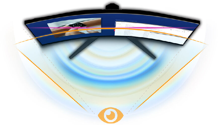 הקימור מאפשר זווית צפייה מקיפה וטבעית יותר ממה שתהיה לך עם מסכים שטוחים המסודרים זה לצד זה.