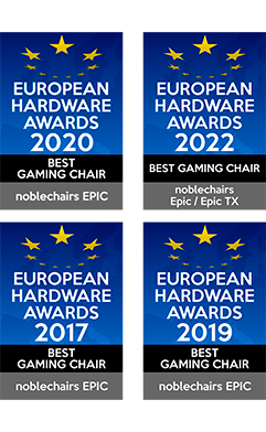 הוענק ב-Computex 2017, 2019, 2020 ו-2022 על ידי איגוד החומרה האירופי, noblechairs זוכה לכבוד לשאת את הכתר היוקרתי במאמץ שלה לדחוף את רמת האיכות לשלב הבא.