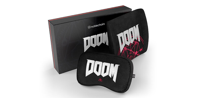 הרקמה הבלעדית והיפה גם על כרית הצוואר וגם על הכרית המותנית מייצגת את DOOM במלוא הדרו עם הלוגו על כרית הצוואר,