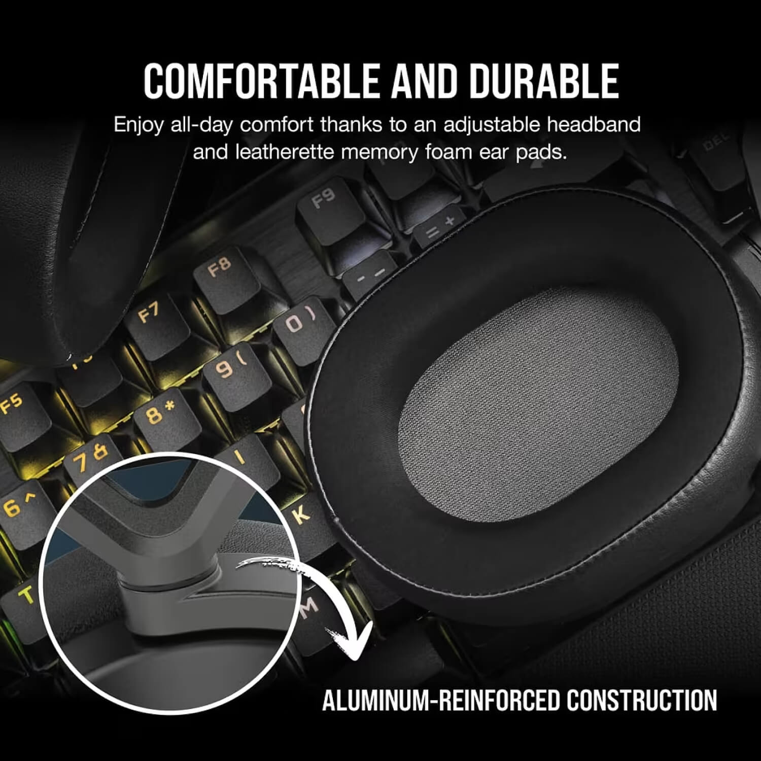 אוזניות ה-HS65 WIRELESS מספקות נוחות מקסימלית לאורך זמן, מחוזקות במבנה אלומיניום עמיד עם סרט ראש מתכוונן ורפידות אוזניים מעור נושם עם קצף זיכרון רך, במשקל של 275 גרם בלבד.