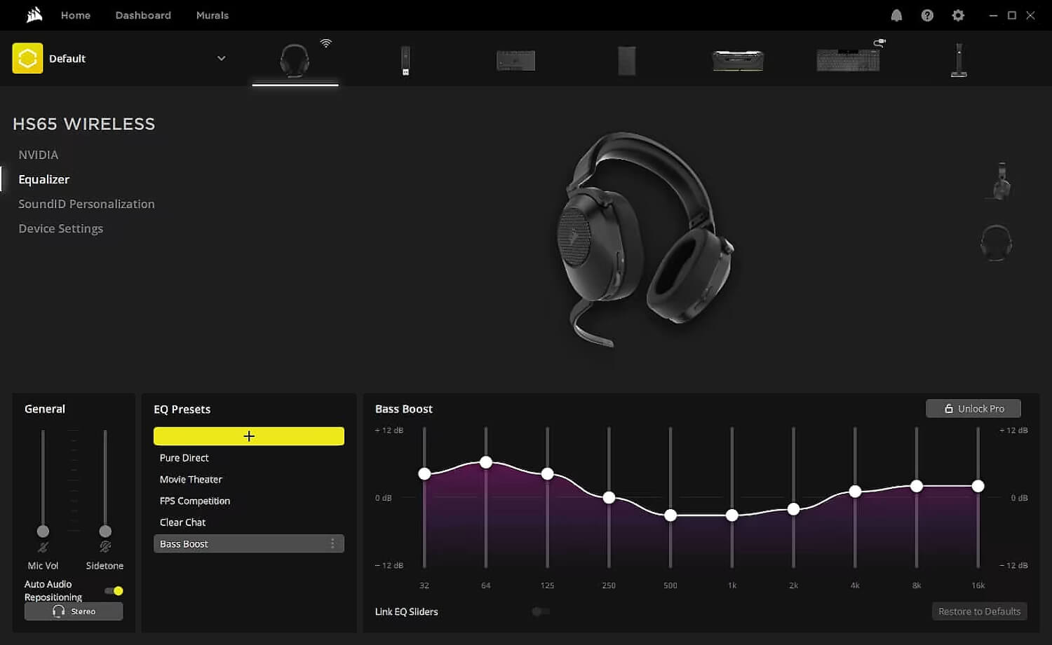 תוכנת CORSAIR iCUE העוצמתית מאפשרת הגדרות אקולייזר אודיו מותאמות אישית, צליל סראונד Dolby Audio 7.1 ועוד.