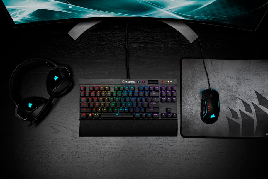 The K65 LUX RGB's compact tenkeyless design fits into any desktop gaming setup,