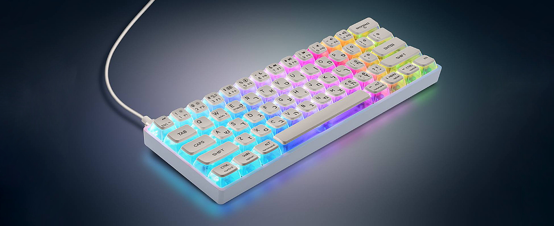 מקלדת גיימינג מכאנית GK61 מבית SKYLOONG, בצבע לבן White Pudding, קטנה וקלה לנשיאה ועם תאורת RGB ניתנת להתאמה אישית. GK61-WHITEPUDDING