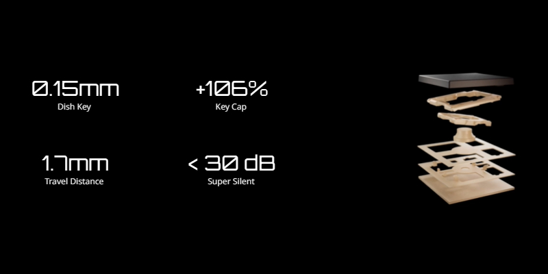 המקלדת החדשה בעיצוב Golden Curve, המשולבת במבנה דק ואלגנטי, משפרת את השליטה במחשב הן במשחקים והן בעבודה היומיומית.