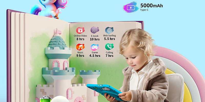 סוללת 5000mAh מבטיחה זמן שימוש ממושך ללמידה ומשחק.
