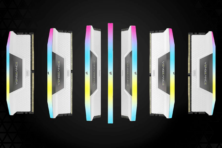 Corsair DDR5 32G (2x16G) 5200 CL40 Vengeance RGB CMH32GX5M2B5200C40W memory delivers DDR5 performance, higher frequencies, and greater capacities optimized for Intel motherboards while lighting up your PC with dynamic, individually addressable ten-zone RGB lighting.