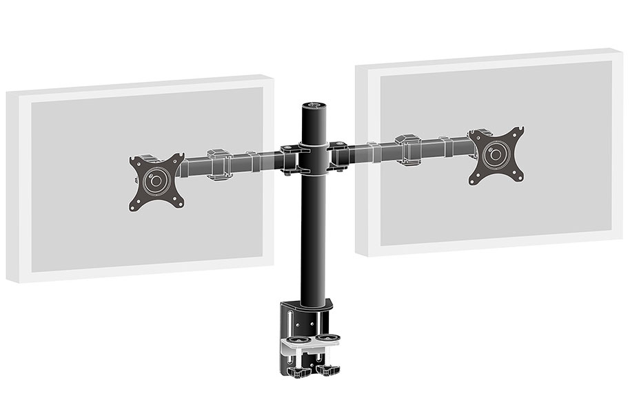The iiyama DS1002C-B1 is a desk mount (clamp) for two flat screens up to 30”. Thanks to the arm you can save space on your desk and the cable management system helps to keep your workplace tidy. Broad adjustment capabilities, including tilt, swivel, height and rotation, the arm offers, allow you to easily adjust the position of the screens to your preferences assuring comfortable and healthy body posture.